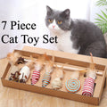 7-piece wooden cat toy set featuring feather wands, plush mice, sisal balls, and more to keep your cat active and entertained. Made with safe, durable materials like wood, sisal, and feathers. Perfect for indoor play, exercise, and bonding with your kitten or adult cat.