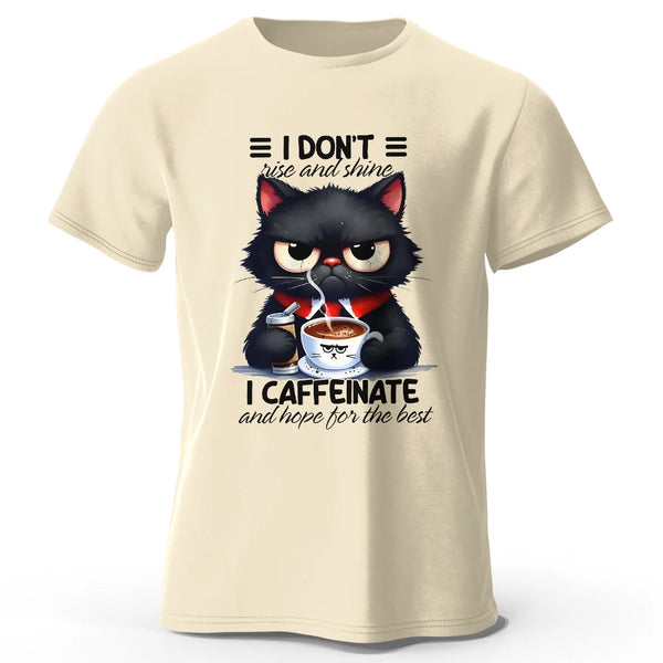 BOLF coffee loving cat print t-shirt made from 100% combed cotton knitted fabric. Features high precision DTF printing with bright, water-resistant colors that won't crack or fade. Available in 6 unisex sizes (S-XXXL) with O-neck collar & short sleeves. Soft, breathable & non-shrinking material perfect for four seasons casual wear.