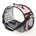 Foldable transparent pet bag made from durable PVC, perfect for cats and dogs up to 15 Jin (approx. 7.5kg). Features breathable design with zipper closure. Available in two sizes: large (42x26x35cm) and small (36x22x20cm). Lightweight and portable, ideal for outdoor travel and easy storage when folded.